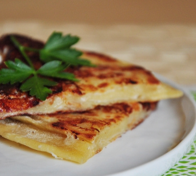 C'est une sorte de galette, de pain plat, cuit à la poêle et garni d'un mélange de fromages.