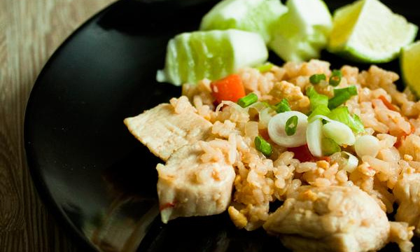 Ou riz frit au poulet. Il s'agit d'une recette thaïlandaise simple, rapide et plein de goûts !