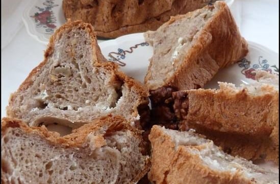 Pendant ce temps, couper le beurre en dés et le mettre dans le bol de votre robot puis y verser le sel, le sucre, les œufs et la farine restante. Ajouter le mélange à la levure lorsque celui-ci aura bien gonflé. Pétrir à vitesse minimum pendant environ 15 mn. Disposer des cerneaux de noix au fond des moules à kougelhopf. Ajouter les lardons et les noix restantes dans la pâte et pétrir encore 5 mn à vitesse minimum. Couvrir le pâton et laisser gonfler 1h30 dans un endroit chaud.