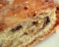 Disposer 200 g de farine avec une pincée de sel dans un récipient, creuser un puits au milieu, verser ensuite dans ce dernier le mélange de levure et de beurre fondu et l'incorporer progressivement à la farine (en rabattant cette dernière du bout des doigts vers le centre, si vous voyez en quoi ça consiste, tant mieux pour vous...). Pétrir soigneusement et longuement (disons un quart d'heure) afin d'obtenir une pâte souple et homogène. Façonner la pâte en boule et la laisser reposer 30 minutes au frais (conseillé par Tit'), recouverte d'un film alimentaire. Aplatir et façonner à l'aide d'un rouleau à pâtisserie un morceau de beurre demi-sel de 120 g entre deux films plastiques, et mettre au frais également (dans la recette originale, cette étape a lieu après les 30 minutes de repos).