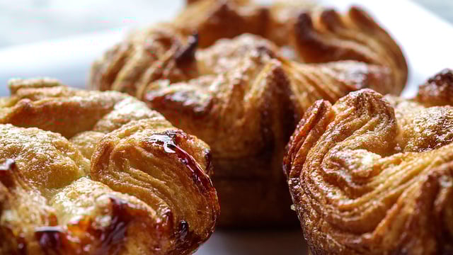 Etaler la pâte, mettre le beurre, et le sucre au milieu, replier les bords comme une pâte feuilletée et plier deux fois en quatre.