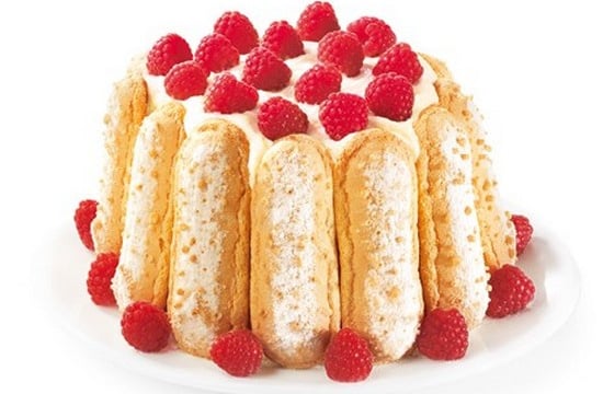 Laisser reposer au minimum 12 heures au réfrigérateur. Idéalement préparer la charlotte la veille et la maintenir au réfrigérateur. Démouler la charlotte en retournant le moule sur un plat puis décorer de framboises et de fraises.