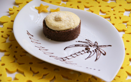 Texture entre la mousse et le gâteau au chocolat, savourez la marquise avec sa douce mousse de mangue-coco qui calme la force du chocolat.