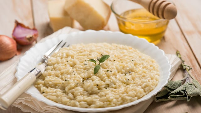 Tout l’intérêt du plat repose sur la cuisson du riz. Le plus important est de ne pas rincer le riz : vous aurez besoin de l’amidon pour avoir la texture crémeuse à la fin. D’ailleurs, pensez à nacrer le riz pour activer son amidon. Autre conseil : ne remuez pas fortement le risotto pour ne pas abîmer la texture des grains. Vous avez eu les yeux plus gros que le ventre ? Utilisez vos restes de risotto pour faire des arancini.