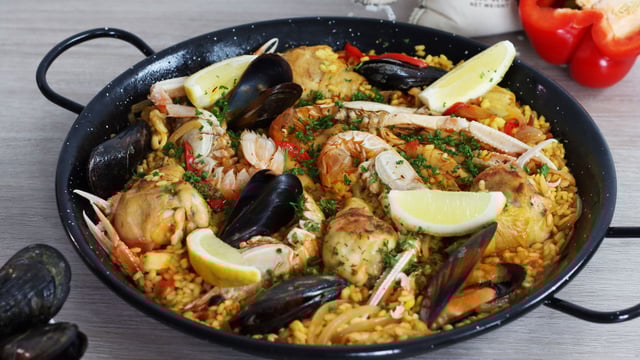 C’est très probablement l’une des spécialités espagnoles les plus connues dans le monde. On pourrait croire que la paëlla est un plat long et fastidieux à réaliser. Pourtant, ce n'est pas le cas grâce à notre recette expliquée pas à pas. Que vous la considériez comme la recette traditionnelle de la paëlla ou non, c’est une recette très plébiscitée grâce aux ingrédients classiques mais très aromatiques utilisés. C’est la meilleure recette de paëlla selon 750g Le Guide.