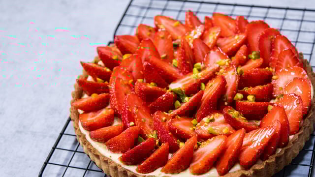 La tarte aux fraises et aux pistaches sur sablé breton, la variante la plus croustillante