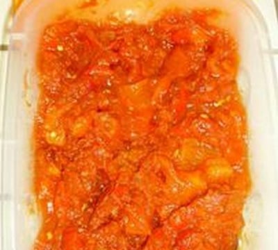 Prendre une sauteuse à fond épais, y verser l'huile, les cubes de tomates, les lamelles de poivrons et l'assaisonnement