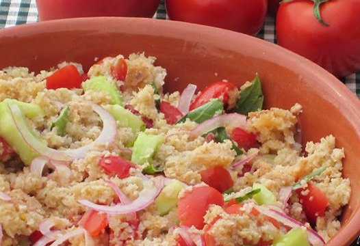 La panzanella est une recette typique Toscane (appellée aussi panmolle, pain mou) c'est une salade de pain très ancienne. Elle est née avec des restes de pain rassis et la matière première à disposition. Fraîche et rapide, c'est une vraie recette estivale et un vrai régal!!!!!!!!!!!!!!!!!!!!