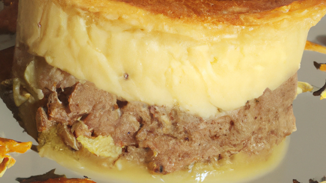 Génoise armagnac, crème pâtissière chantilly avec morceaux pruneau glaçage meringuée.