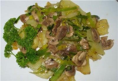 Retirez les champignons et ajouter en peu de l'huile, puis y mettre la pomme de terre; les griller jusqu'à l'apparition de la croustille.