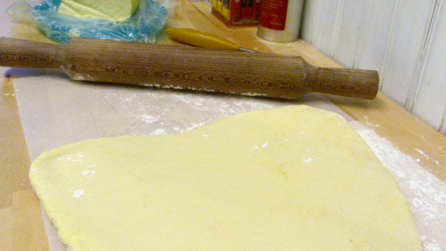 quand j'ai fait cette pâte, je pensais qu'elle était raté car le beurre s'est échappé de partout, j'ai décidé de laisser reposer la pâte 1 nuit au frigo plutôt qu'1h et quand je m'en suis servi c'était nickel ! Ce dont je ne me suis pas servi, hop au congélateur pour une autre recette ! Veiller à bien fariner votre plan de travail et votre rouleau de pâtisserie.