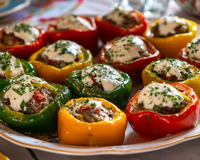Éplucher et émincer finement l'oignon. Laver le poivron, le couper en quatre, enlever les graines et les cloisons blanches puis tailler la pulpe en gros dés.