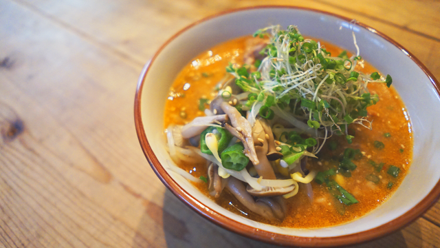Assemblage ! Dans un grand bol mettez vos nouilles, la viande ainsi que la soupe. Disposez sur le dessus vos toppings (ici soja, champignons et gombos). Les micro-pousses, parsemez d'oignons verts et également de sésame (non broyez) si vous le souhaitez.