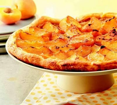 La beurrer au pinceau puis la poudrer de sucre roux. Ranger les oreillons d'abricots très serrés en commençant par le bord extérieur de la pâte, côté bombé contre le fond de tarte. Le jus ne coulera pas et la pâte restera plus croustillante.