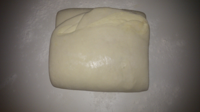 Recommencez l'opération précédente 2 fois (2 fois 2 tours) en laissant à chaque la pâte 1 h au frais. Finissez par laisser reposer la pâte 1 h au frais.