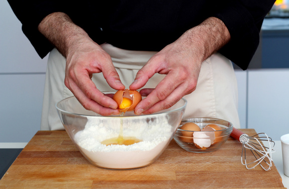 2Faites un puits et cassez-y les oeufs.