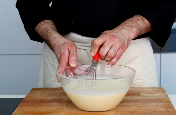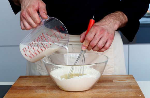 4Mélangez, tout en ajoutant le lait petit à petit.