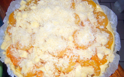 Dénoyauter les abricots et les couper en deux. Déposer-les sur le fond amandes et parsemer de sucre vanillé et de poudre amandes.