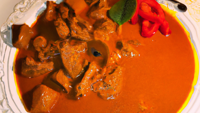 Lamelles de porc sautées au curry rouge et lait de coco.