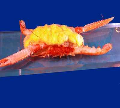 Dressage :- Dans une assiette mettre les langoustines coté carcasse 2 demis comme sur la photo l'une la pince à gauche et l'autre la pince à droite, former un crabe, ajouter la mousse récupérée.Vous pouvez agrémenter ce plat de cèpes fumés.