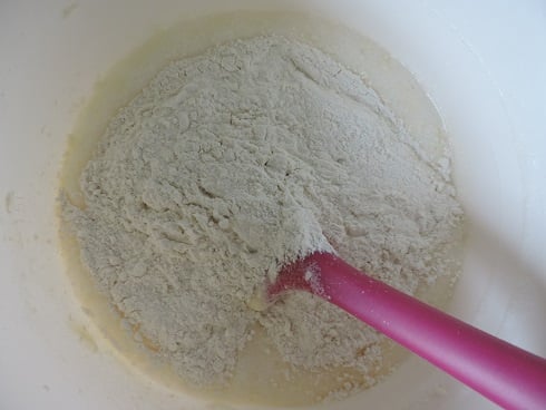 2Verser la farine d'un seul coup et l'incorporer doucement.