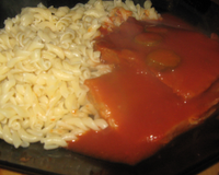 Dans une sauteuse faire un roux clair avec le beurre et la farine ajouter de la sauce et ajouter deux louches de bouillon.