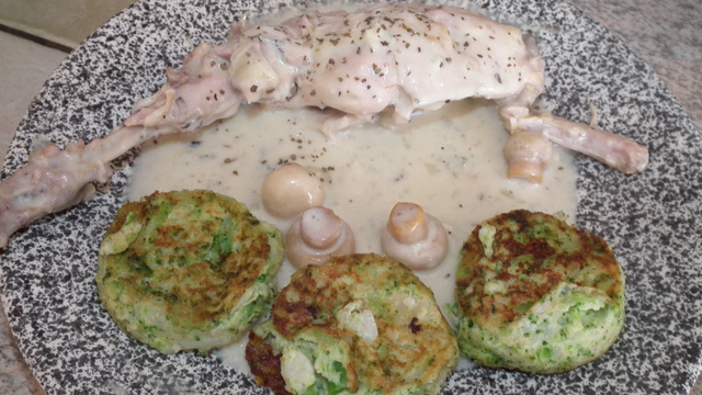 Lapin avec une sauce à base de fourme d'Ambert.