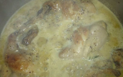 Avant de servir, ajoutez 10 cl de crème à la sauce du lapin et mélangez.