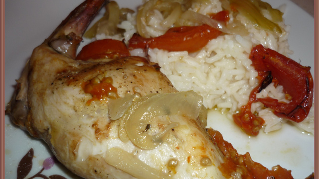 - 1Badigeonner votre lapin avec la moutarde.Assaisonner et garnir un plat à gratin avec l'oignon coupé en lamelles.Poser votre lapin dessus et parsemer de tomates coupées grossièrement.Arroser avec le vin blanc et l'huile d'olive en filet.