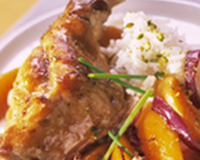 Servez décoré de pistaches, de ciboulette ciselée avec du riz parfumé.
