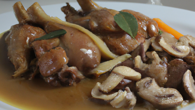 Ajoutez les champignons, laissez-les également revenir. Versez le cidre dans le sautoir. Remettez les lardons et les oignons ainsi que l'ail écrasé, rectifiez l'assaisonnement. Lorsque le lapin est cuit. Faites chauffer le plat de service, égouttez les morceaux de lapin et disposez les dans ce plat. Ajoutez le beurre manié à la sauce, mélangez bien. Nappez le lapin.