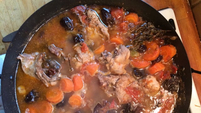 Dans une casserole faire un caramel blonds avec le sucre et 1 cuillère d'eau, le déglacer au vinaigre de banyuls, ajouter 1 louche du jus de cuisson, verser sur le lapin.