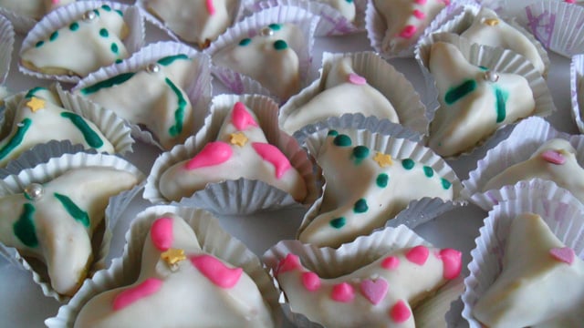 Les disposer sur un plat saupoudré de farine et mettre à cuire au four 200° jusqu'à obtenir une couleur dorée. - 4Préparation du glaçageBattre les blancs d'oeufs en neige.