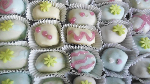 Testez sur un gâteau. Si c'est trop coulant, ajoutez du sucre glace. Trempez la surface des gâteaux dans le glaçage et avant qu'il ne sèche mettre votre déco.