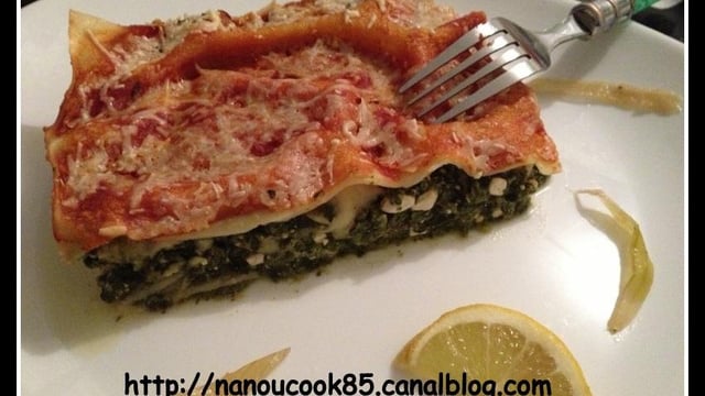 Mettre les pâtes à lasagnes dans un plat allant au four ensuite, versez le mélange d'épinards, ajoutez la boule de mozzarella coupés en morceaux par dessus et un peu de gruyère, refermez avec les pâtes restantes puis couvrir avec le coulis de tomate.