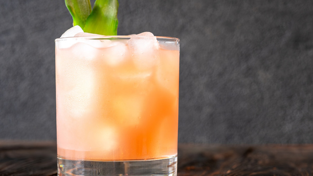 Cocktail à base de Calvados, Cointreau et jus de goyave.