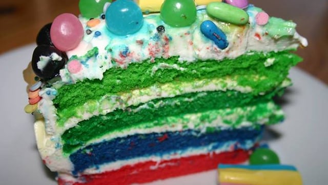 Dans une terrine mélangez 300g de sucre + 4 jaunes d'oeufs + 200g de farine + 200g de lait. Monter 4 blancs d'oeufs en neige ferme et les incorporer délicatement au mélange puis ajouter une pincée de bicarbonate de soude. Répartir cette pâte dans 4 récipients différents et colorer chacune avec vos colorants alimentaires. Faire cuire séparément chaque couleur une 10aine de minutes dans un four préchauffé à 180°C.