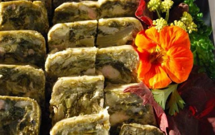 Couper menu le chou fleur, l'oseille, les salades, les blancs de poireaux, le persil, la iboulette et l'ail. Couper le lard en dés. Mélanger le tout. - 2