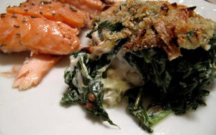 Voici un gratin fort bon, un peu amer mais parfait accompagné d'un saumon frais cuit au barbecue.