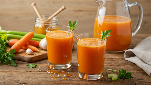 Passer le céleri, les carottes, l'ail et le persil à la centrifugeuse.