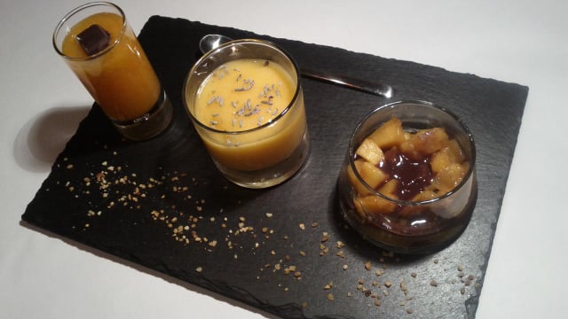 Présentez sur une assiette de présentation les 3 préparations en verrine.