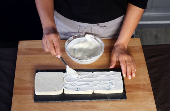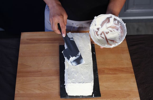 Avec la préparation à base de fromage frais, recouvrez entièrement le Sandwich cake pour ne plus voir les couches et obtenir un "glaçage" bien lisse.