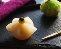 Prendre une cuillère à soupe de Anko dans la main et enrober le Pruneau d'Agen. Placer la boulette dans un carre de Gyuhi et replier le tout en forme de fleur. Coiffer la fleur avec une petite boule de Anko colorée en jaune (colorant alimentaire). Finaliser par une tête d'épingle de Pruneau d'Agen.