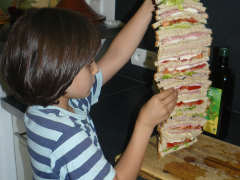 il est des recettes qui ne demandent pas de complication mais de l'imagination... sur l'idée du dessin animé "scoubidou" voici un méga giga scoubi-guitch de pas moins de 32 demi tranches de pain (et c'est sans compter la garniture) !
