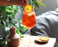 Même sans l'avoir goûté, les amateurs de cocktails reconnaissent au premier coup d'œil le cocktail Spritz. En effet, grâce à sa couleur orange, difficile de le louper. En matière d'ingrédients, le Spritz est un savoureux mélange de vin blanc pétillant (ici vous allez mettre du Prosecco) avec un alcool à l'orange amère (de l'Apérol) et d'un trait d'eau gazeuse. Afin de donner de la fraîcheur à votre Spritz, nous vous conseillons de mettre au moins trois glaçons dans chaque verre. Ensuite, vous allez décorer les verres de Spritz avec une demi rondelle d'orange fraîche. Si vous n'en avez pas, vous pouvez utiliser une orange séchée. Enfin, vous allez rajouter deux cure-dent sur lesquelles vous allez mettre deux olives vertes.