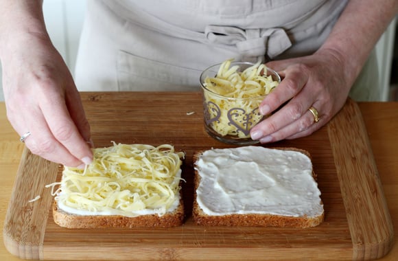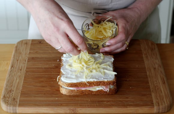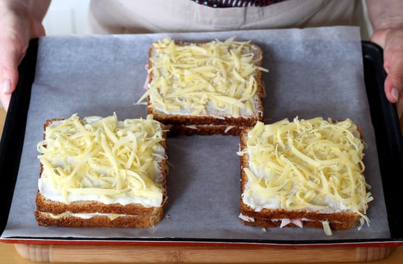 7Ajoutez sur chaque-croque-monsieur le restant du fromage râpé.