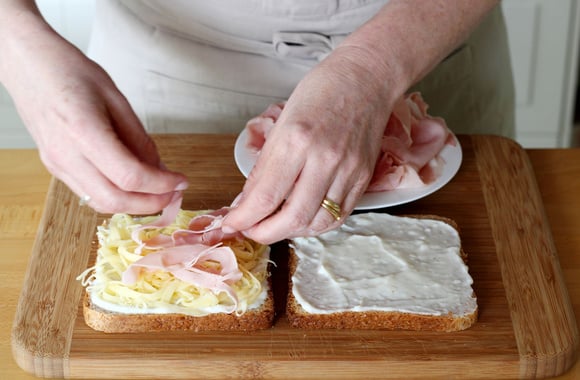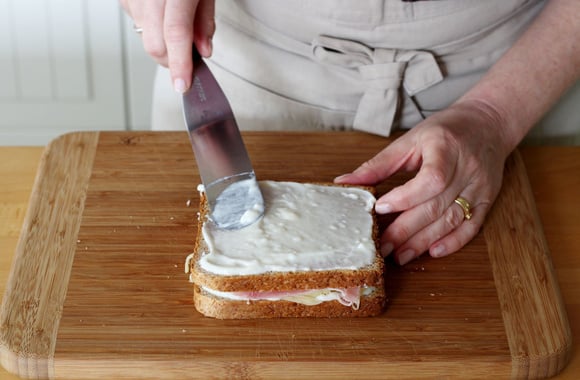 Pour obtenir un pain de mie bien croustillant à l'extérieur sans qu'il ne se dessèche au four, beurrez légèrement les faces externes de votre sandwich avec du beurre pommade (mou, sorti à l'avance) plutôt que du beurre fondu. Si vous optez pour la version à la béchamel, étalez-en une fine couche sur le dessus avant de parsemer votre fromage râpé : cela l'empêchera de durcir à la cuisson.