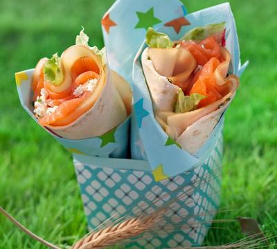 Sur une galette wrap, étaler le mélange de fromage blanc, disposer les tranches de FOL EPI, la truite fumée, la salade et rouler le wrap sur lui-même.