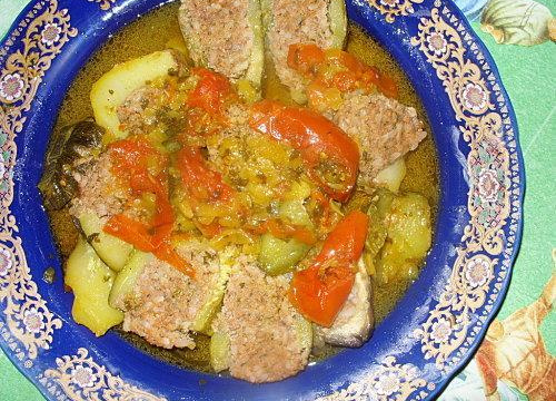 Ensuite on mélange la viande hachée avec les épices et le riz et en farcir les légumes. Préparer la sauce tomate avec une bonne persillade.