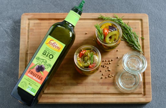 Recouvrez d'huile d'olive Soléou.Laissez les légumes mariner pendant au moins 24 heures dans un endroit frais.
